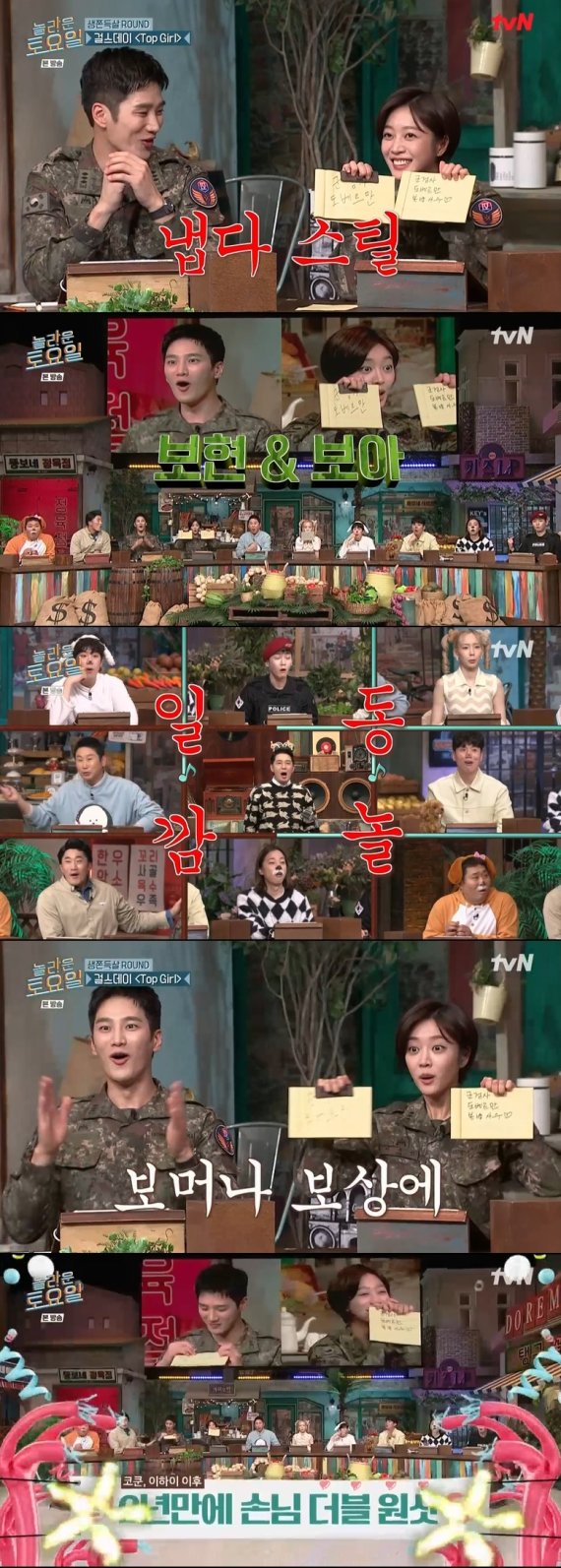 안보현과 조보아는 26일 오후 방송된 tvN '놀라운 토요일'(이하 '놀토')에 두 사람이 함께 출연하는 신작 드라마 '군검사 도베르만'을 홍보하기 위해 출연했다.