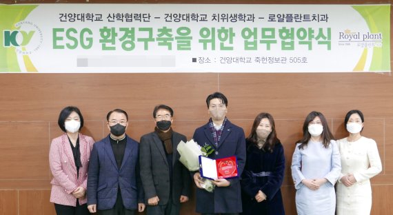 [대전=뉴시스] 유순상 기자 = 건양대는 산학협력단과 치위생학과가 로얄플란트치과와 ESG(환경, 사회, 구조) 환경구축 업무협약을 체결했다고 27일 밝혔다.