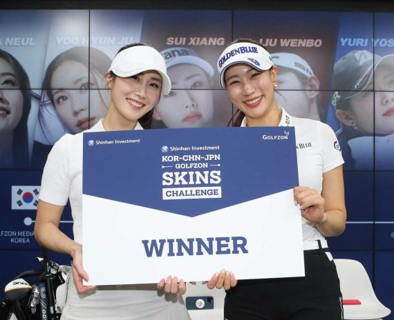 김하늘과 유현주는 26일 서울 강남 골프존타워 미디어 스튜디오와 중국 골프존 상하이 플래그십 스토어, 일본 도쿄 골프존 스튜디오를 연결해 실시간으로 진행한 스크린골프 대결에서 1만8400달러의 스킨을 획득해 우승했다.
