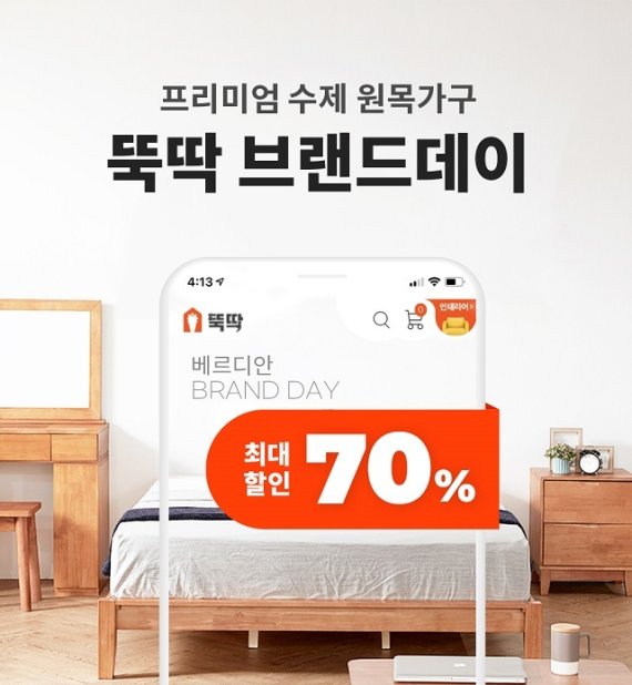 (서울=뉴스1) 임해중 기자 = 수작업 프리미엄 원목가구를 제작하는 베르디안은 합리적인 프리미엄 인테리어 커머스 플랫폼 뚝딱 앱을 통해 거실 가구부터 침실 가구까지 신혼, 혼수 및 입주가구 제품들을 엄선해 최대 70%까지 할인된 금액으로 판매하는 '뚝딱 브랜드데이' 단독 특가전을 진행한다.