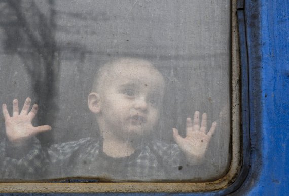 우크라이나 군인들은 최전선으로 향하기 직전, 사랑하는 가족들을 안전한 곳으로 이동시켰다. 그 가운데 수많은 아이가 아빠와 헤어지는 장면이 목격됐다.