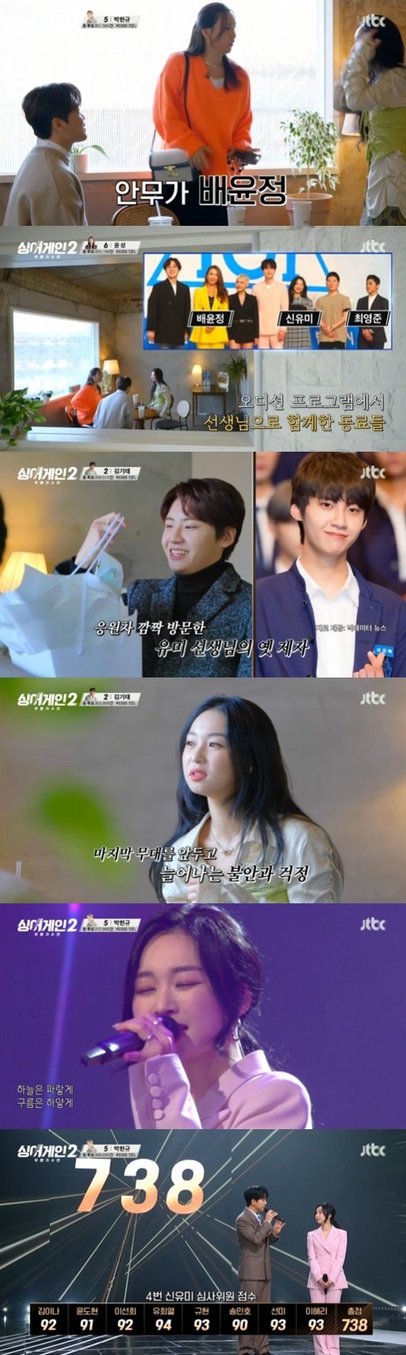 신유미는 '싱어게인2' 무대를 하며 압박감에 두통과 이명이 왔다고 털어놓으며 "즐기면서 했는데 그게 잘 안된다, 걱정이 더 많아지는 느낌이다"라고 말했다. 신유미의 걱정과 고민에 배윤정은 "즐기면서 하라고 하지만 쉽지 않다, 애들한테 하듯이 즐기면 된다, 본인이 후회 안 하고 털어내는 게 중요하다"라고 조언했다.