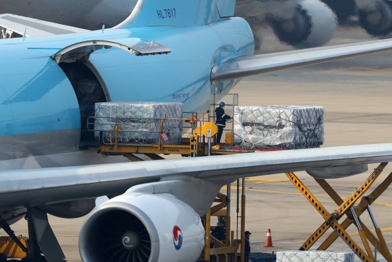 KE8518편으로 화이자 백신 123.1만회분 도착