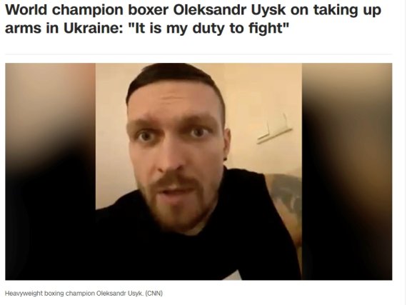 1일(현지시간) CNN은 2012 런던 올림픽 복싱 금메달리스트이자 세계 복싱 헤비급 통합챔피언인 올렉산드르 우식(35)과의 인터뷰를 공개했다.
