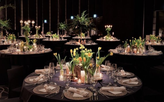 꽃과 은은한 초 장식으로 아늑한 공간이 연출하며, 하객들이 신랑신부의 버진로드를 마주보고 앉는 바 테이블 형태로 좌석이 배치하는 것이 특징이다.