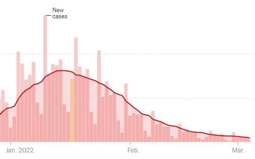CNN은 미 질병통제예방센터(CDC)가 분류한 지역사회 코로나19 수준 평가 자료에서 확산 수준이 '높음'으로 분류되는 지역도 지난달 24일 약 1200개에서 이달 3일 472개로 줄었다.