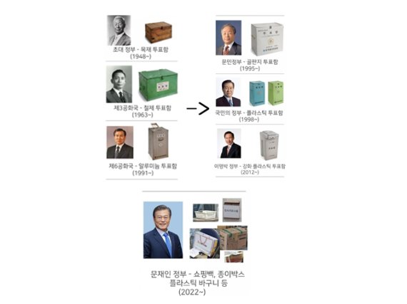 한편 부정 시비를 막고자 끊임없이 변화를 꾀했던 투표함은 1948년 초대 정부 시절에는 목재를 사용해 제작했다. 열쇠로 여닫는 형식이었으며 1963년 박정희 전 대통령의 제3공화국 시절부터 철제 투표함이 사용됐다.