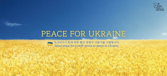 8일 서울꿈새김판에는 푸른 하늘과 노란 밀밭으로 우크라이나 국기 색상을 표현한 배경에 '우크라이나 땅에 하루 빨리 평화가 깃들기를 기원합니다(PEACE FOR UKRAINE)'라는 문구가 담긴다.