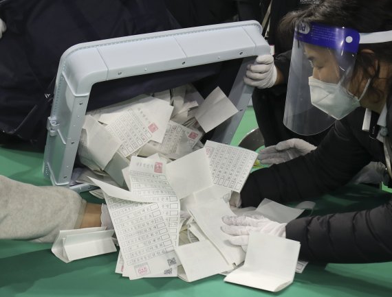 더불어민주당 이재명 후보 7107표(39.81%), 정의당 심상정 후보 372표(2.08%) 등이다. 무효와 기권도 각각 296표와 753표 나왔다.