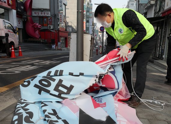 선거 현수막 게시와 철거는 모두 후보자 책임이다. 공직선거법 제276조에 따르면 선거운동을 위해 선전물이나 시설물을 설치한 자는 선거일 후 지체없이 이를 철거해야 한다. 위반할 경우 200만원 이하의 과태료를 문다.