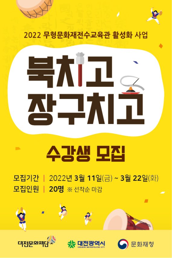 (대전=뉴스1) 김기태 기자 = 대전문화재단이 운영하는 웃다리농악전수교육관에서 '북치고 장구치고' 수강생을 모집한다.