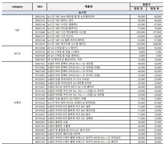 대표적으로 180° 스킨 엑티베이팅시스템은 25만9000원에서 27만7000원으로, 루미스파 스타터 키트는 26만7000원에서 29만5000원으로 각각 가격이 상승한다. 뉴스킨 바디케어 트리오는 5만5000원에서 6만1000원으로 10.9% 오른다.