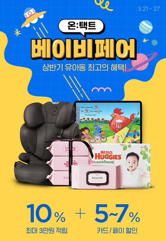 CJ온스타일 모바일 라이브쇼에서는 5일 동안 19개의 유아동 대표 상품을 선정해 라이브 커머스를 진행한다. 21일 오전 10시 북유럽 지역 1등 기저귀 '리베로'를 소개한다. 방송 중 구매 인증 시 2명을 추첨해 아이패드 6세대 미니를 증정한다. 같은 날 오전 11시 방송에서는 영어 그림책 '노부영 원서'를 역대 최대 혜택가 판매하며 3만원 상당의 사은품을 제공한다. 22일 오전 10시에는 최대 1만 5000원 상당의 스타벅스 상품권을 증정하는 '팸퍼스' 기저귀 방송을, 23일 오전 10시에는 출산 필수템 특집전으로 '하기스 네이처메이드' '슈너글 아기 욕조' 외 '베베숲' '천재교육 돌잡이·빅키즈' 호비 아이챌린지' 등을 혜택과 함께 특별 판매가에 소개한다.
