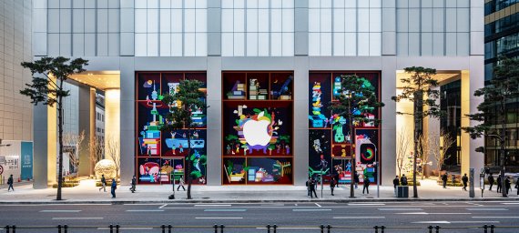 애플은 "책가도 각 칸에는 창의성을 뽐내고 있는 사람들과 애플의 제품과 서비스를 통해 서로 소통하는 에너지가 넘치는 모습을 재현하고 있다"며 "명동점은 더 많은 고객과 소통하고 무한한 상상력과 창의력의 원천이 될 새로운 공간으로 자리매김 할 것"이라고 전했다.