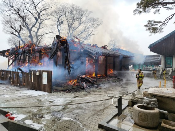 오후 4시55분 현재 잔불 정리…문화재 피해 없어