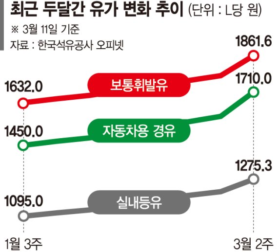 22년간 화물차를 운전한 오모씨(56)는 "기름값이 올해 1월만 해도 1300원 했는데 한 두달 사이 리터당 500~600원 올랐다"며 "드럼 하나(200L) 기준으로 하면 얼마나 높겠나"며 한숨 쉬었다.