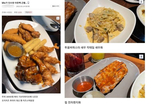 앞서 A씨는 지난 14일 이 커뮤니티에 'BHC가 인수한 아웃백 근황'이라는 제목의 글을 올렸다.