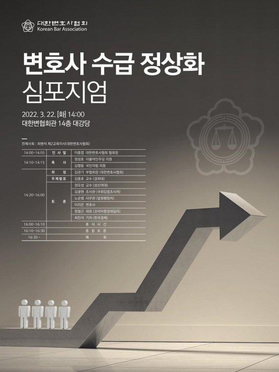[파이낸셜뉴스] 대한변호사협회는 오는 22일 서울 역삼동 대한변협회관에서 '변호사 수급 정상화 심포지엄'을 연다고 19일 밝혔다.