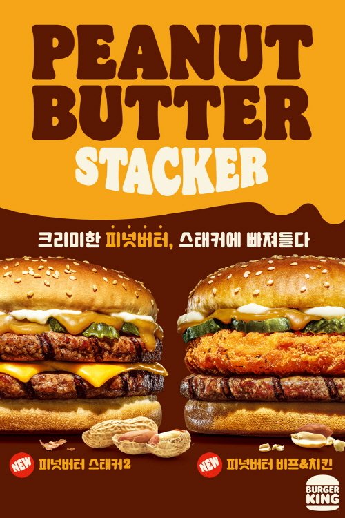 버거킹코리아는 다양한 식재료를 활용한 이색적인 신메뉴들을 선보이며 세계적으로 메뉴 개발력을 인정받고 있다. ‘피넛버터 스태커’ 역시 고유의 진한 풍미가 매력적인 피넛버터를 버거에 접목했다는 점에서 매우 특별하다. 버거킹은 ‘피넛버터 스태커’와 함께 치킨 패티를 더한 ‘피넛버터 비프&치킨’, 기본 프렌치 프라이에 피넛버터 소스를 얹은 ‘피넛버터 프라이’도 신메뉴로 함께 선보인다.