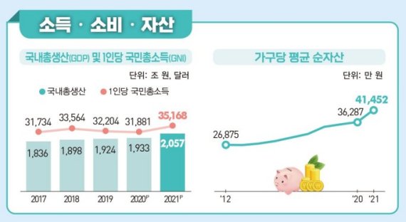 지난해 우리나라의 국내총생산(GDP)은 2057조원으로 전년 대비 6.4% 증가했다.