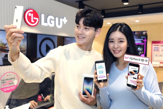 LG유플러스는 아이폰SE3 고객 맞춤 요금제도 마련했다. Δ'최저 2만5600원에 일5GB'(소진 후 5Mbps) Δ'최저 1만6500원에 11GB+일2GB'(3Mbps) Δ최저 5800원에 일 7GB(1Mbps)를 포함한 세 가지다. 음성통화 문자는 기본 제공된다.