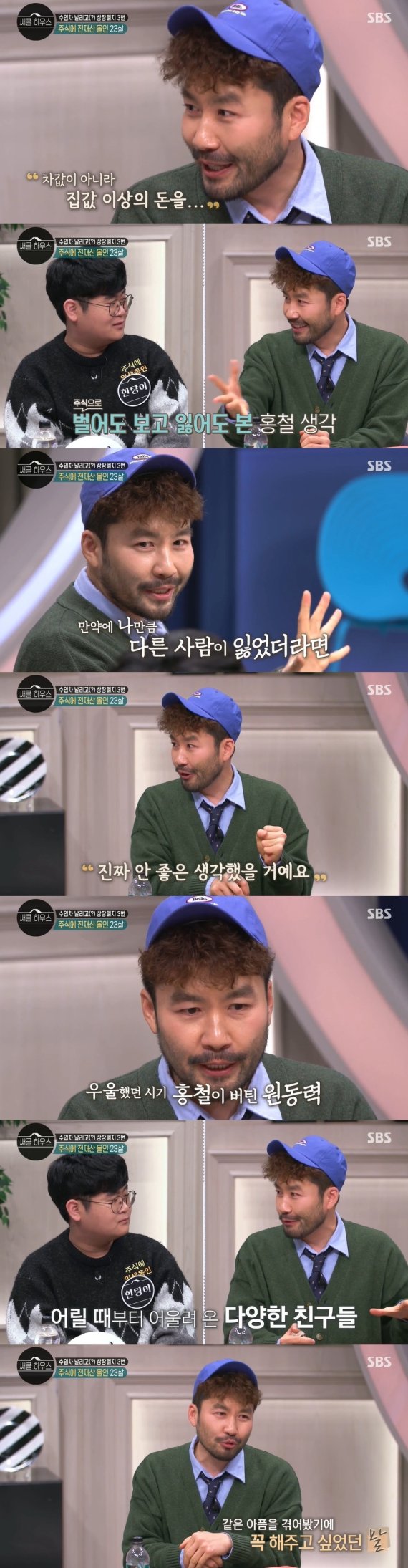 이를 들은 노홍철도 "조심스럽지만 저는 찻값이 아니라 집값 이상의 돈을 벌었다가 날려봤다"고 고백해 눈길을 끌었다. 이어 그는 "만약 이 돈을 다른 사람이 잃었더라면 진짜 안 좋은 생각을 했을 것"이라며 "저도 재기를 못 한다 생각해서 삶을 비관했는데 다행스럽게도 그 나이대 다양한 친구들을 많이 만나고 다양한 경험을 많이 했다, 그 나이에 필요한 경험이 있고 소통에서 얻어지는 에너지가 있더라"고 털어놨다.