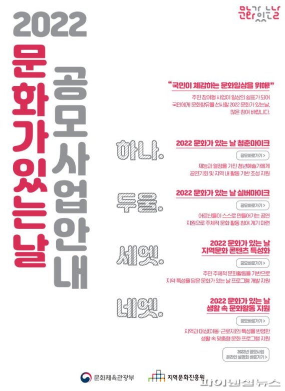 【파이낸셜뉴스 김포=강근주 기자】 김포문화재단은 문화체육관광부-(재)지역문화진흥원이 공동 주관하는 2022년 문화가있는날 ‘생활 속 문화활동’ 공모사업에 <2022 찾아가는 문화예술 프로그램 ‘휴, 쉬는 시간間!’>으로 최종 선정돼 최대 8000만원을 지원받게 됐다. 이는 2015년 김포문화재단이 창립 이래 매칭 사업을 제외하고 전국 공모사업에서 획득한 최고 금액이다.