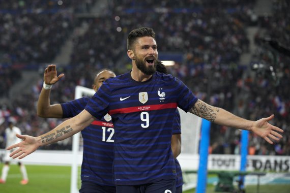 [서울=뉴시스]박상현 기자 = 올리비에 지루가 자신의 통산 A매치 47번째 득점을 터뜨리며 '전설' 티에리 앙리가 갖고 있는 프랑스 대표팀 최다골 기록 경신까지 5골을 남겼다.