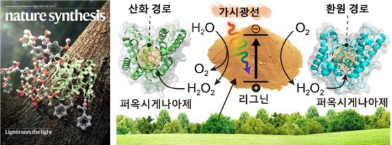 연구팀은 리그닌이 광화학적으로 과산화수소를 적절한 속도로 생성하도록 설계해 퍼옥시게나아제가 지속해서 옥시 기능화 반응을 수행하도록 만드는 데 성공했다.