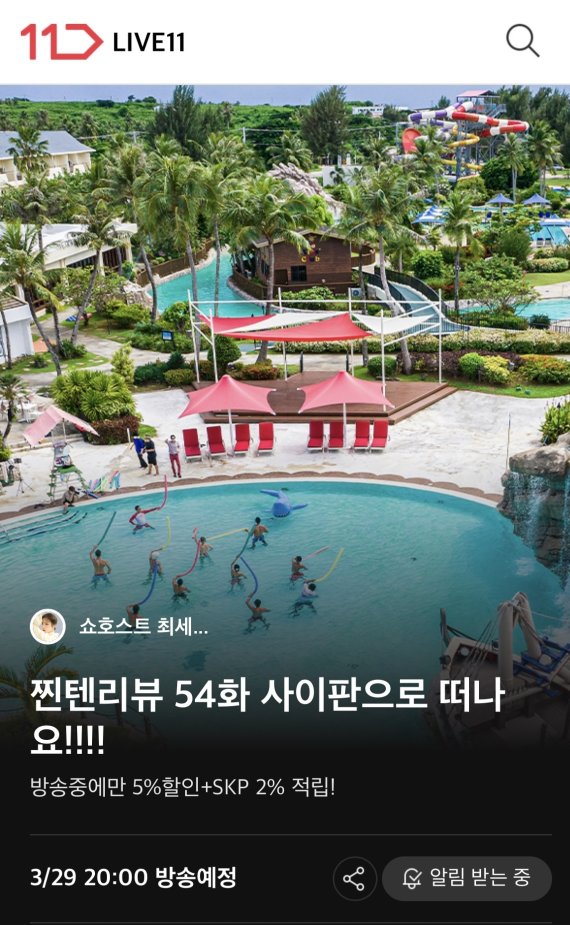 11번가 라이브방송 단독 혜택으로 라이브방송 중 구매 시 5% 할인·SK페이 포인트 2% 적립·댓글 추첨 이벤트를 통한 11번가 해외항공 최대 10만원 할인쿠폰 증정·무료 룸 업그레이드 혜택 등도 마련했다.