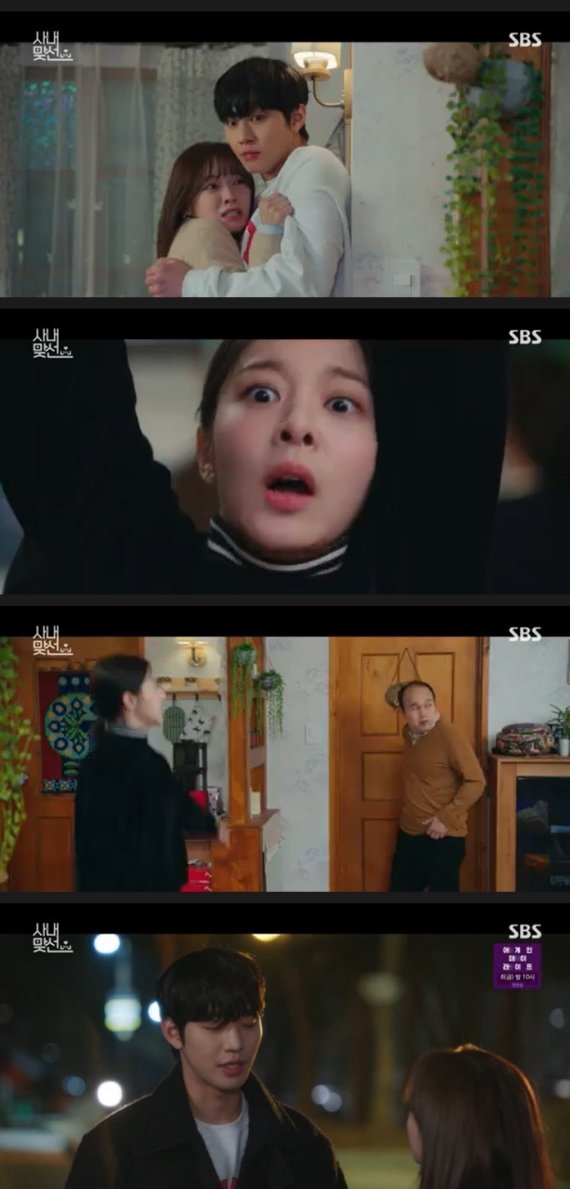29일 오후 방송된 SBS 월화드라마 '사내맞선'(극본 한설희 홍보희/연출 박선호)에는 신하리(김세정 분)와 강태무 (안효섭 분)가 갑자기 집으로 돌아온 신하리의 부모인 신중해(김광규 분)와 한미모(정영주 분)에 당황하며 도망치는 모습이 담겼다.