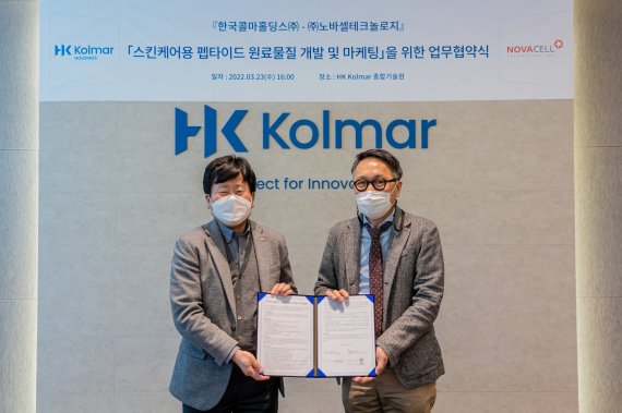 이번 협약으로 노바셀은 스킨케어용 펩타이드 후보물질을 공급하고 한국콜마홀딩스는 이 물질을 활용한 더마화장품 개발 및 마케팅을 적극 지원한다.