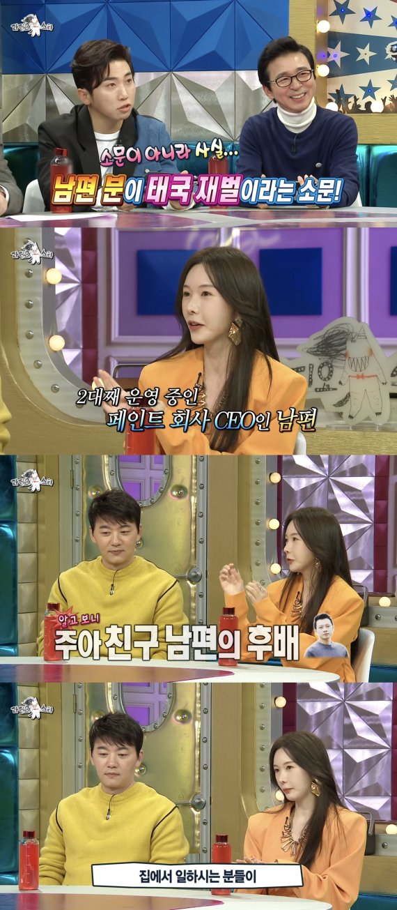 이날 신주아는 남편이 태국 재벌 2세냐는 MC들 질문에 "재벌까지는 아니다. 태국 국민 페인트 브랜드를 2대째 운영 중"이라고 답했다.