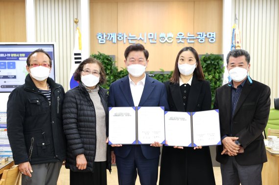 [광명=뉴시스] 박석희 기자 = 경기 광명시가 31일 시장실에서 철산래미안자이 입주자 대표 및 센트럴 광명 602호 대표와 '다 함께 돌봄센터' 구축을 위한 무상 임대 협약을 체결했다. 다함께돌봄센터는 초등 돌봄 사각지대 해소와 육아 부담 경감을 목적으로 한다.