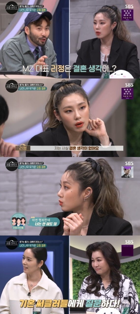 결혼에 대한 가치관이 다른 요즘 MZ세대에게 결혼은 필수가 아닌 선택이 됐다. 본격적인 토론에 앞서 MZ세대 리정에게 결혼에 대한 생각을 물었다. 리정은 결혼을 생각해봤냐는 질문에 "아니요, 저는 큰 뜻이 없다"라고 밝혀 시선을 모았다.