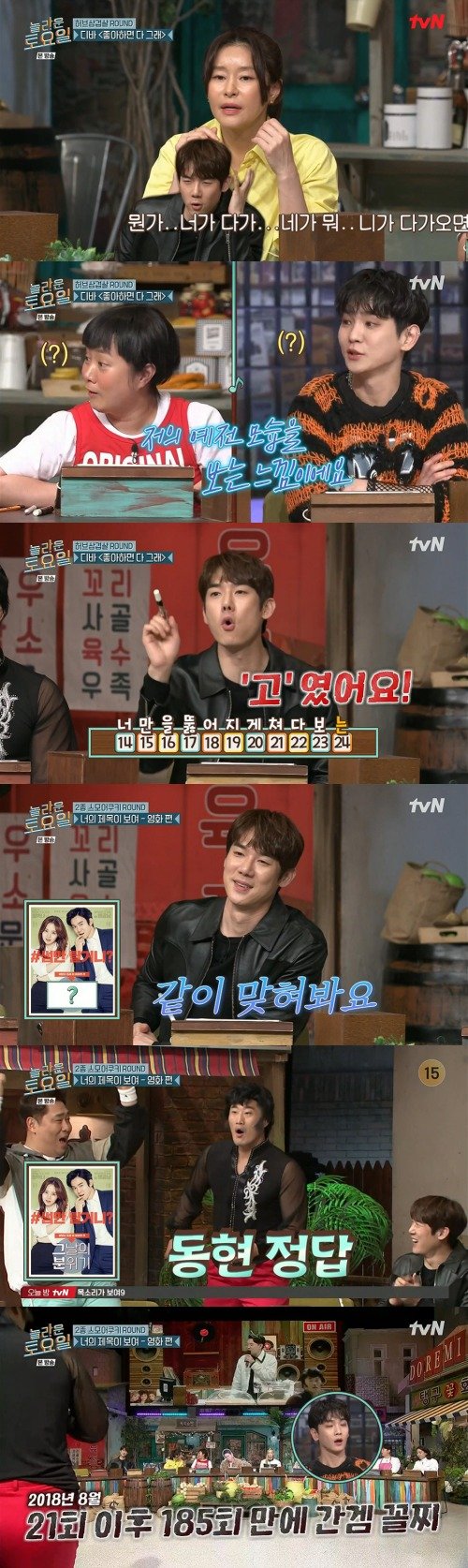간식 라운드에서는 영화 포스터를 보고 제목을 맞히는 게임을 했다. 게스트인 유연석이 첫 번째로 간식을 획득했다. 이후 예지원이 출연한 영화가 문제로 출제됐다. 정답은 '귀여워'였다. '그녀는 4차원' '엄마는 외계인' 등 기상천외한 오답이 속출했다. 태연이 맞혀 간식을 받았다. 마지막으로 키와 한해, 김동현이 남았다. 한해가 먼저 탈출했다. 김동현과 키의 결승이 진행됐다. 마지막 문제는 유연석과 문채원이 출연한 영화였다. 문세윤도 함께 출연했다. 김동현이 '그날의 분위기'를 맞히면서 키가 2018년 이후 4년 만에 처음으로 간식 게임 꼴찌가 됐다. 21회 이후 185회 만이다. 그때도 김동현이 키를 꺾었다.
