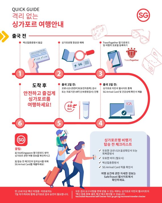 [파이낸셜뉴스] 백신 접종을 완료한 한국 여행객 대상으로 싱가포르 입국이 전면 재개된다. 싱가포르관광청은 백신 접종을 완료한 여행객이 싱가포르에 격리 조치없이 입국할 수 있다고 밝혔다.