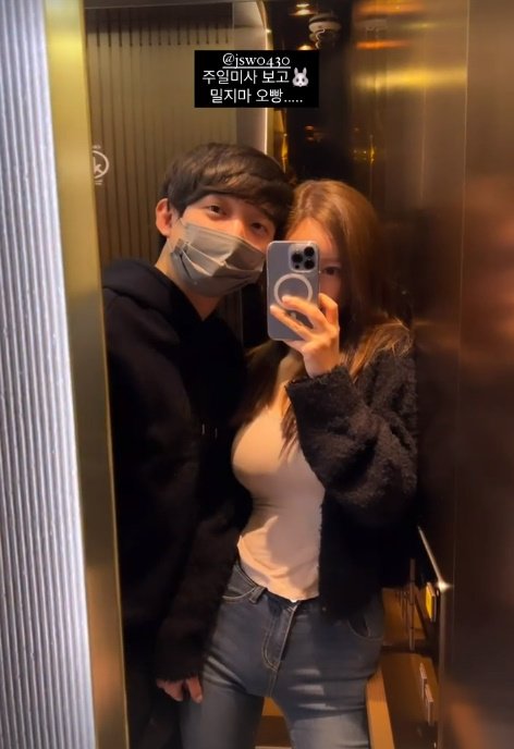 사진에는 엘리베이터에서 거울 셀카를 찍고 있는 야옹이 작가와 밀착한 전선욱 작가의 모습이 담겼다. 야옹이 작가는 지난 2020년 웹툰 '프리드로우'의 전선욱 작가와의 연애를 공개하며 선남선녀 '웹툰 작가 커플'로 화제가 된 바 있다. 이후에도 연애를 이어가고 있는 이들이 엘리베이터에서도 애정을 과시해 눈길을 끈다.