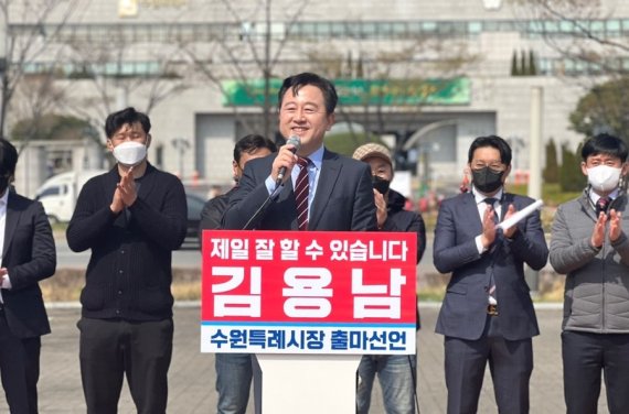 이날 출마 기자회견에서 김 전 의원은 "정체된 수원의 발전을 위해서는 리더십의 교체가 필요하다. 중앙정부와의 긴밀한 협조를 통해 필요한 예산을 쏟아붓도록 하겠다"며 "정치력과 실력을 갖춘 저 김용남이 제일 잘 할 수 있다"고 강조했다.