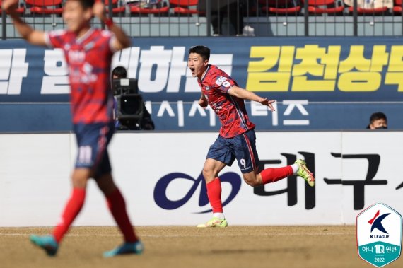 프로축구 K리그1(1부) 김천 상무의 공격수 조규성이 3월 가장 역동적인 골을 터뜨린 주인공이 됐다
