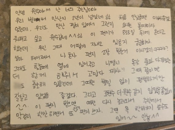 이 우편물 속에서 집 계약 후 얼마 되지 않아 그해 3월에 예천을 방문했다가 333일 뒤에 전해주는 엽서 발송 서비스를 이용한 흔적도 확인됐다. 당시 서로에게 쓴 엽서가 발송되면서다.