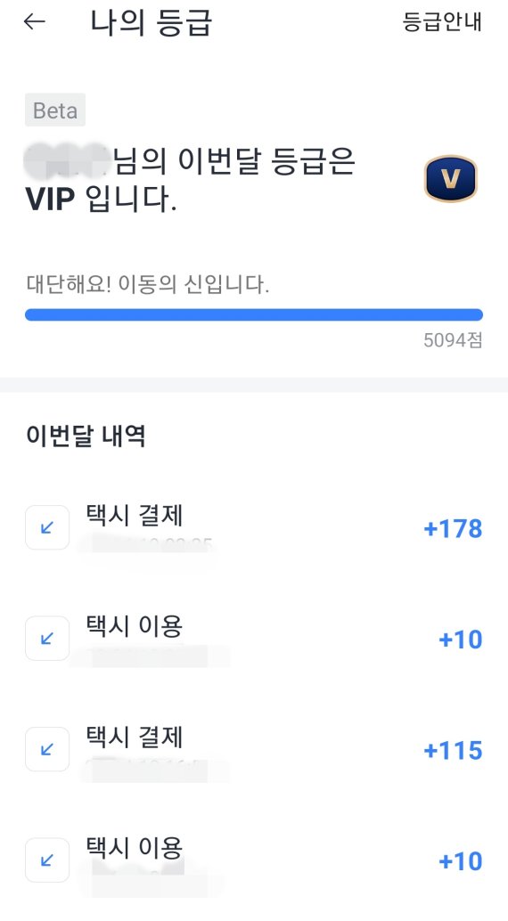 우선, 카카오T에서 운영하는 등급 포인트는 카카오T 포인트와는 별개다.