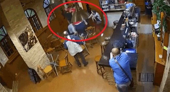영상에 따르면 이날 오후 11시30분께 러시아 남성 3명이 영업이 종료된 술집에 들어와 음료를 주문했다. 이에 술집 주인이 가게 마감 시간이 끝났다고 말했지만, 이 남성들은 계속해서 술을 달라고 요구했다.