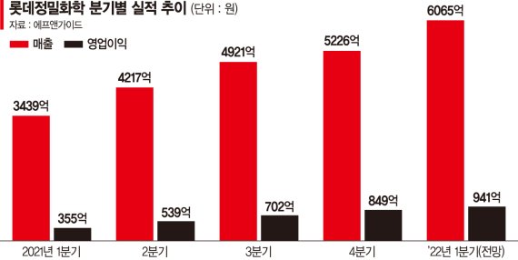 이 경우 롯데정밀화학은 5개 분기 연속 사상 최대 실적을 거두게 된다.