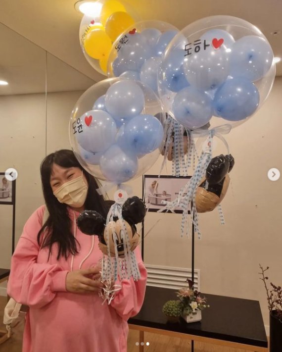 사진 속에는 산후조리원을 찾은 정주리가 조리원 측이 마련한 풍선 이벤트에 감동한 듯 미소를 짓고 있는 모습이 담겼다.