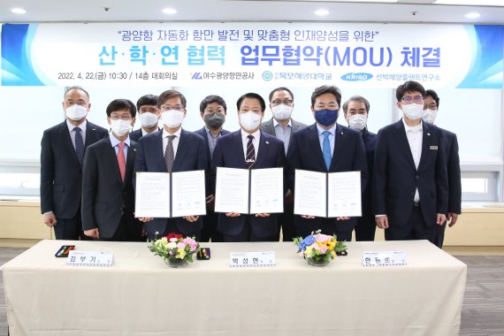 (광양=뉴스1) 김동수 기자 = 여수광양항만공사는 22일 목포해양대학교, 선박해양플랜트연구소와 산·학·연 협력 업무협약을 체결했다.