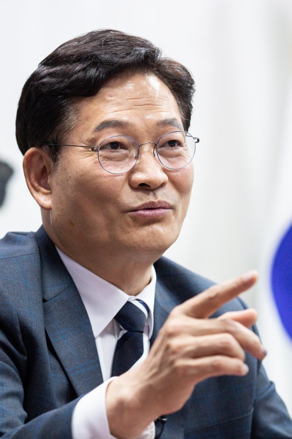 민주당 후보에겐 가시밭길인 서울시장 선거에 출사표를 던진 송영길 전 대표(5선·인천 계양구을)는 22일 뉴스1과의 인터뷰에서 "이번 선거는 오 시장과의 경쟁이기도 하지만 실제로는 윤석열 정부와의 대결이라고 생각한다. 민주주의 기본원리는 견제와 균형이라는 점에서 반드시 송영길 당선이 필요하다"고 말했다.