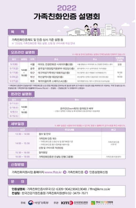 김숙자 여가부 가족정책관은 "가족친화적인 직장문화 조성을 촉진하기 위해 2014년 인증기준을 전면 개편했고, 그동안 가족친화기업도 양적으로 대폭 증가했다"며 "앞으로도 기업의 현장 상황을 반영해 인증기준을 개선하면서 가족친화인증제를 내실 있게 운영해 나갈 것"이라고 말했다.