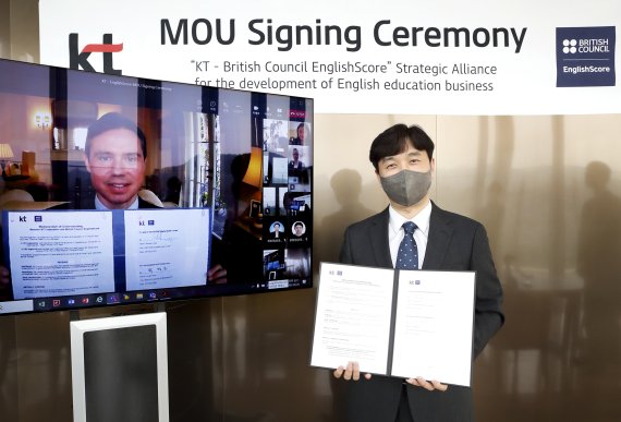 (서울=뉴스1) 이기범 기자 = KT가 영국문화원의 잉글리시스코어와 온라인 영어 교육 사업 협력 추진을 위한 업무협약(MOU)을 체결했다고 27일 밝혔다.