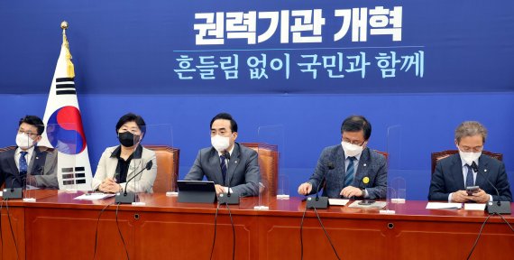 그러면서 "이번 본회의 통과될 때 한국형 FBI 설치가 (사법개혁특위 구성 후) 1년6개월 뒤에 된다는 내용과 경제·부패 범죄도 1년6개월 뒤 (수사권이) 경찰로 이관된다, 검찰로부터 분리된다는 내용을 부칙에 꼭 넣어 통과시키고 싶다"며 "국민의힘 의원도 힘을 합쳐주면 좋겠다"고 거듭 전했다.